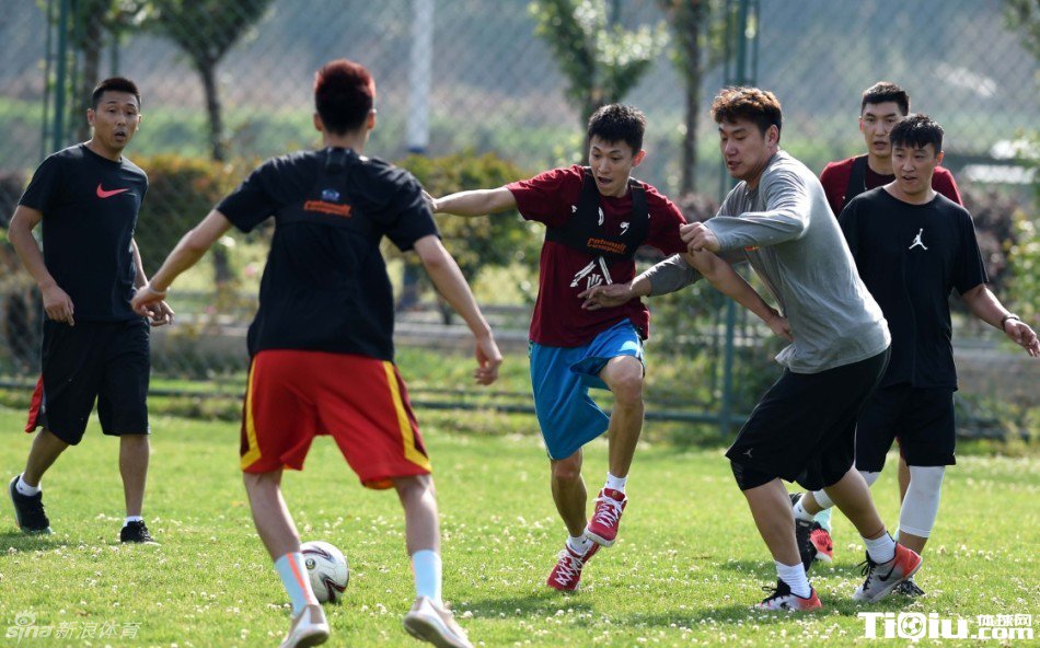 中国男篮海埂趣味训练 宫鲁鸣指导队员踢足球(/)
