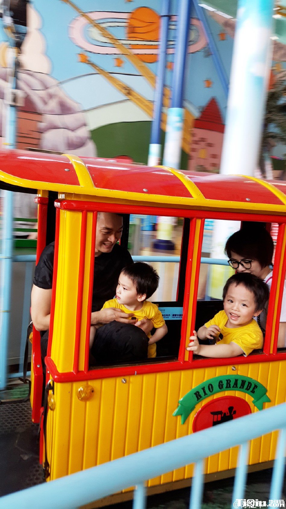 陈江华晒一家外出游玩照 妻子漂亮两儿子可爱(/)