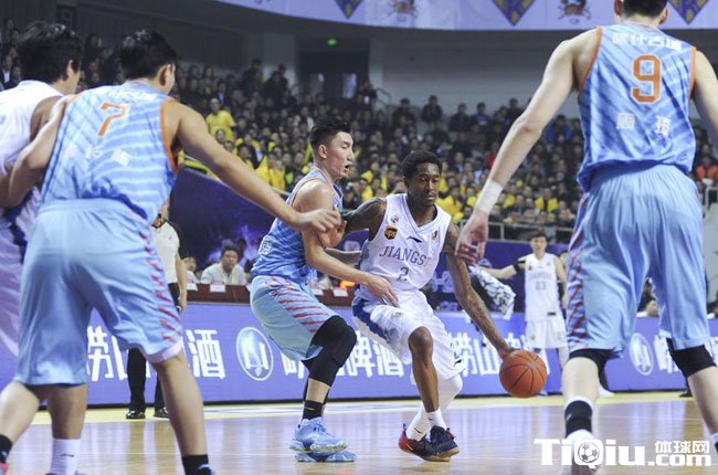CBA常规赛新疆VS肯帝亚 周琦面对防守神情自若(/)