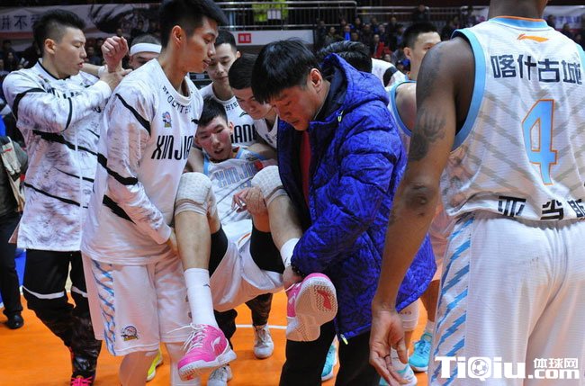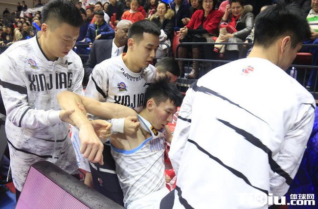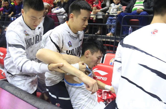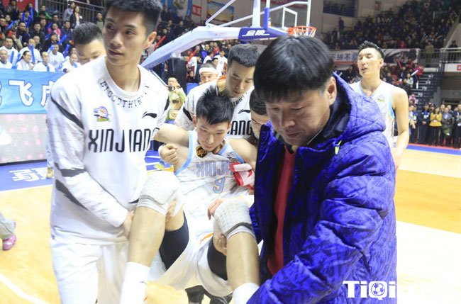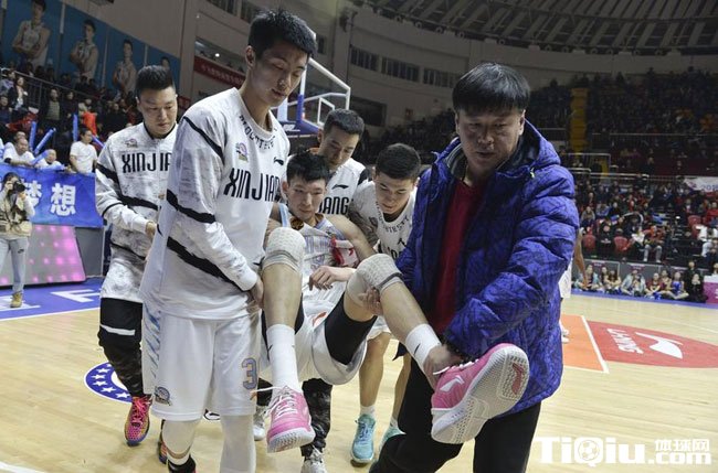 CBA季后赛新疆VS山东 周琦90度崴脚倒地不起(/)