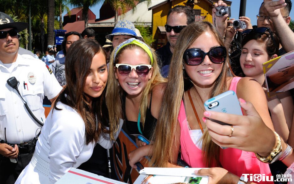 C罗女友亮相洛杉矶 白裙飘飘大方送吻(/)