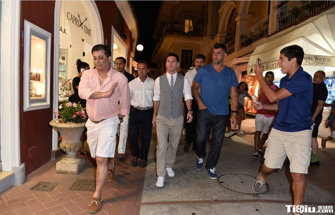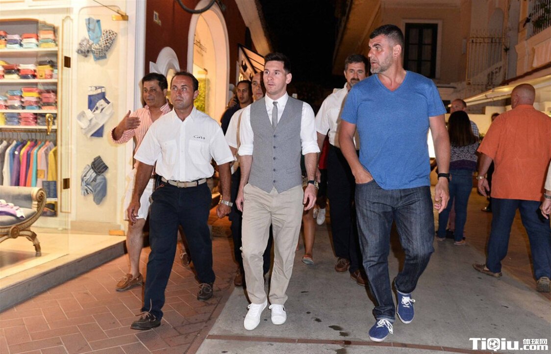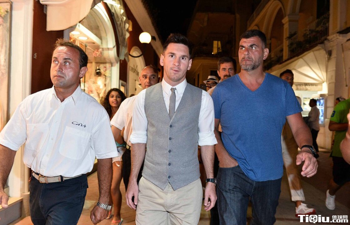 梅西度假多人陪行如球王 小西装帅气引围观(/)