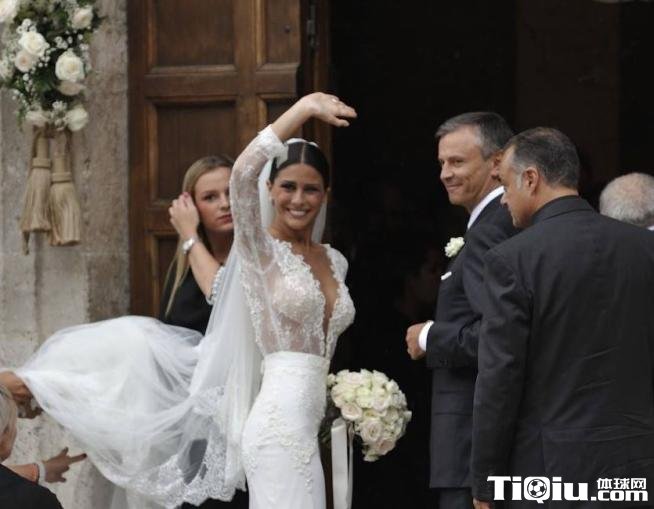 罗马前锋德斯特罗与女友结婚 新娘透视婚纱秀性感(/)