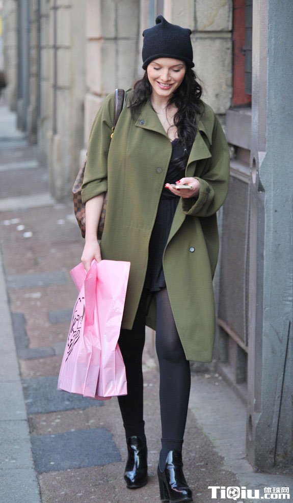 曼城女神海伦身穿军绿色大衣现身街头(/)