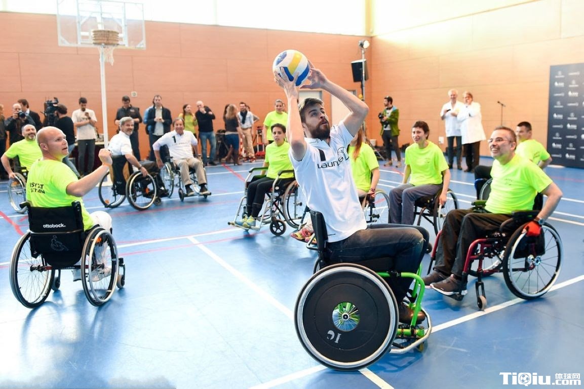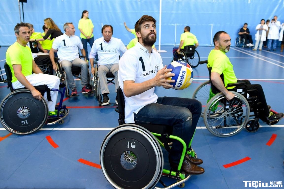 皮克出席慈善活动 坐轮椅打篮球(/)