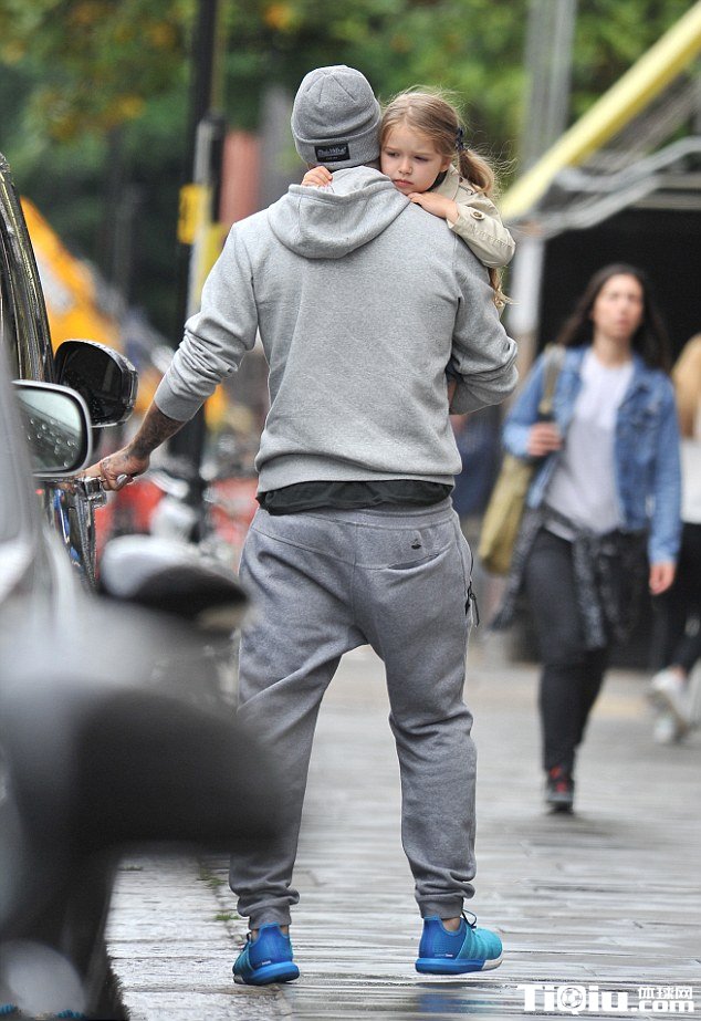 贝克汉姆七公主萌照 小贝怀抱爱女出街(/)