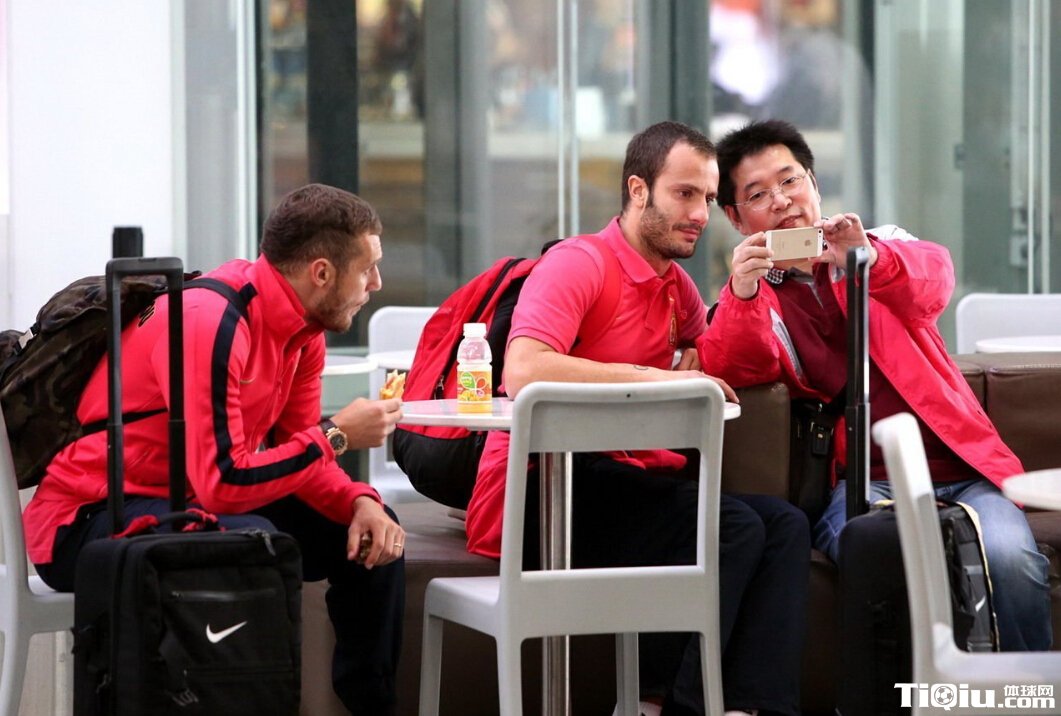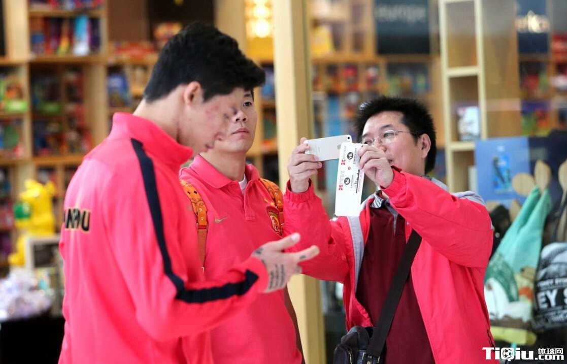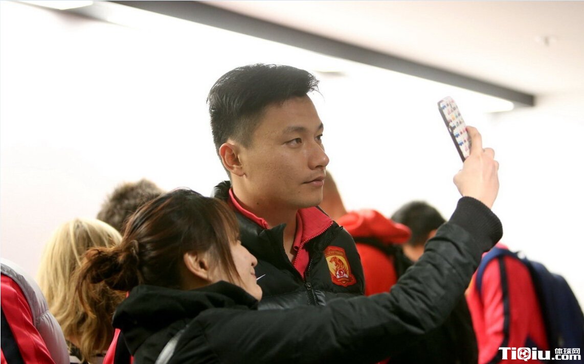广州恒大启程回国 机场与球迷玩自拍(/)