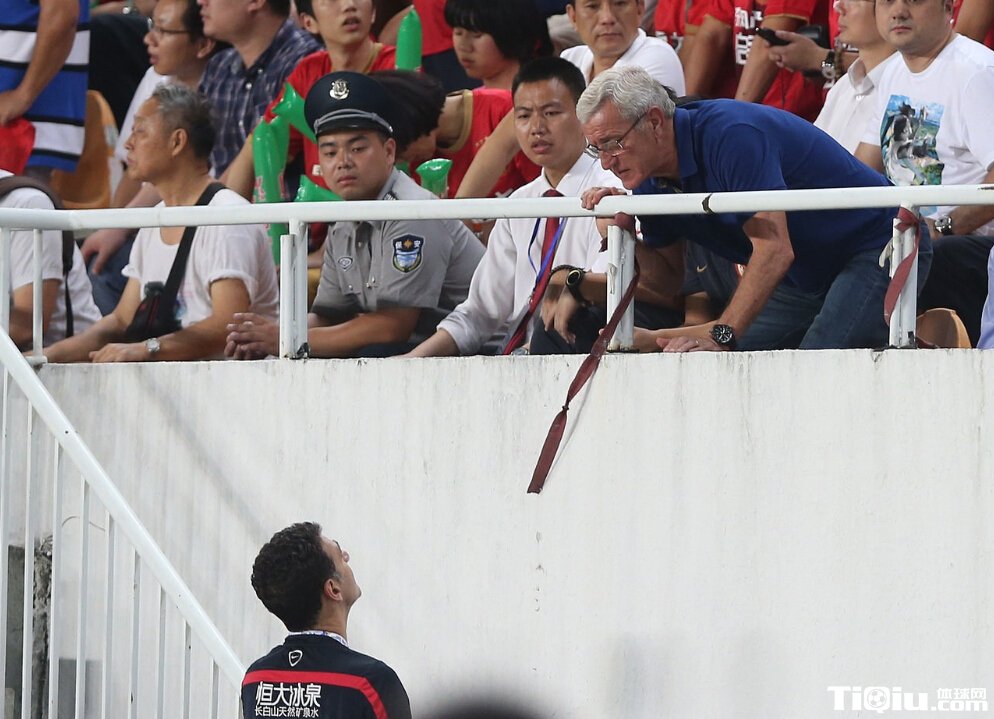 里皮看台看球 通过助手传递信息(/)