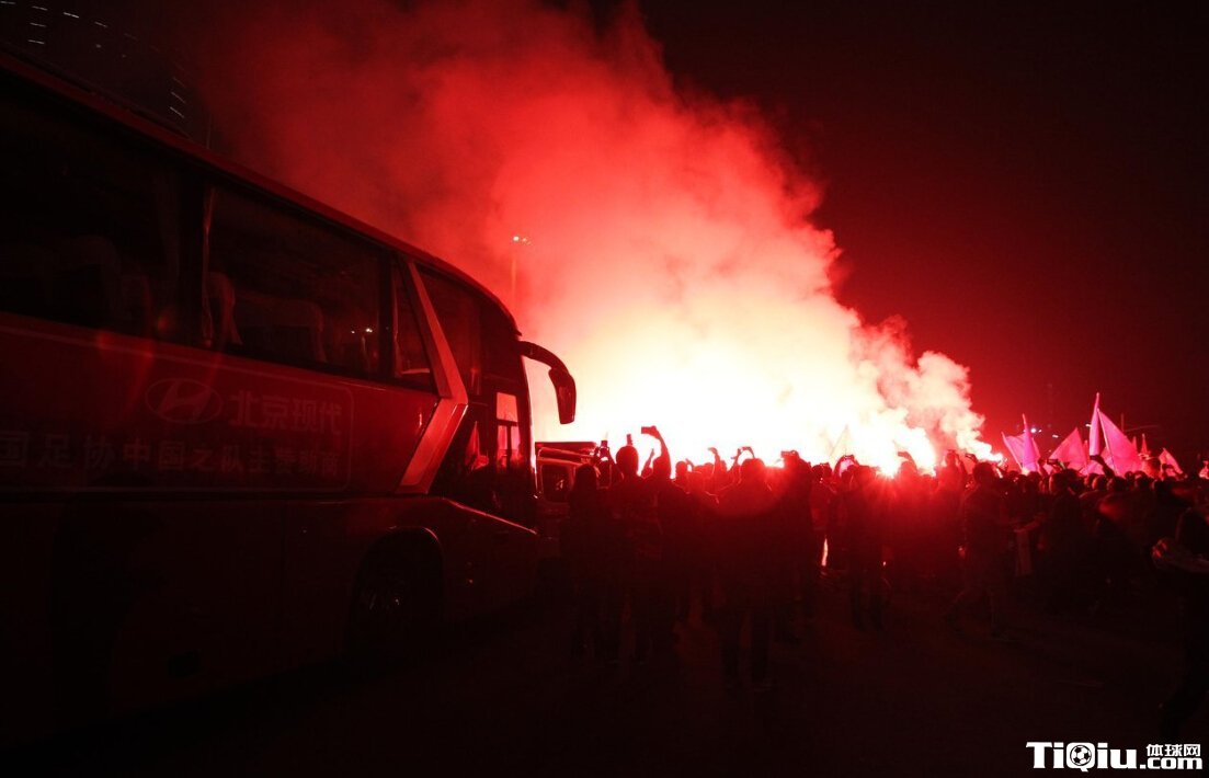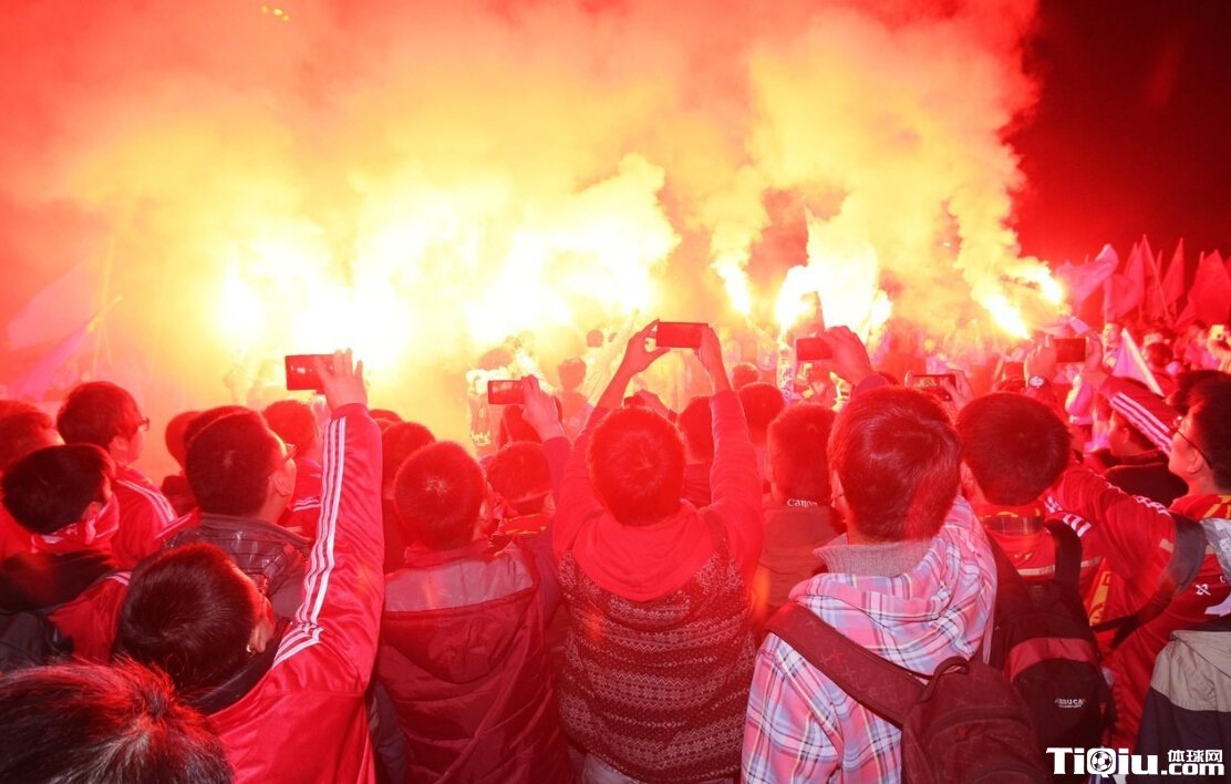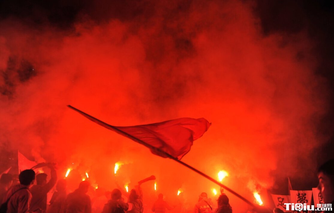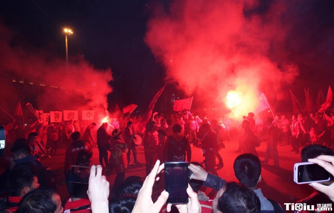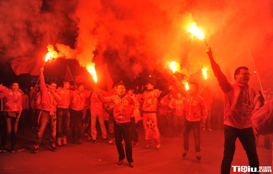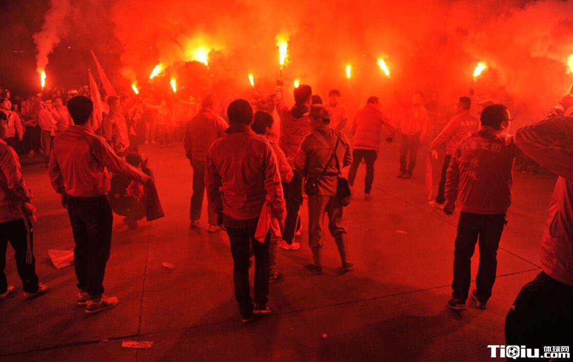 疯狂!西安球迷场外游行助威 放烟火场面震撼(/)