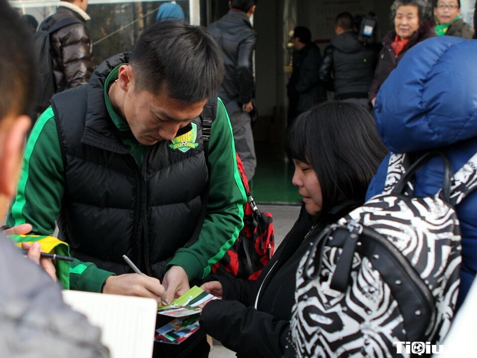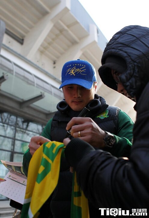 大宝驾到!粉丝忙合影签名 国安赴海南冬训(/)
