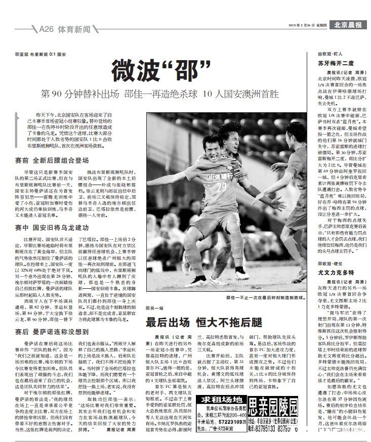 北京国安1-1全北现代 巴塔拉扳平317共18张
