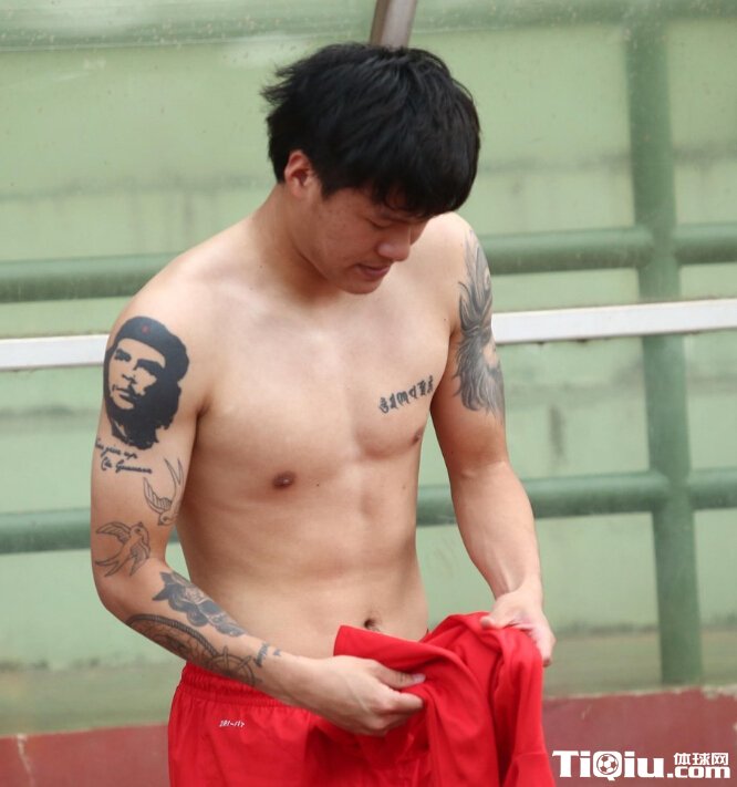 国奥当红小生秀腹肌+纹身(/)
