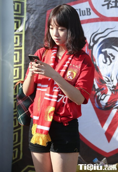 恒大助威团到场 美女球迷独坐一角惹人怜(/)