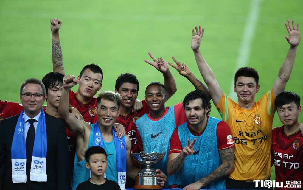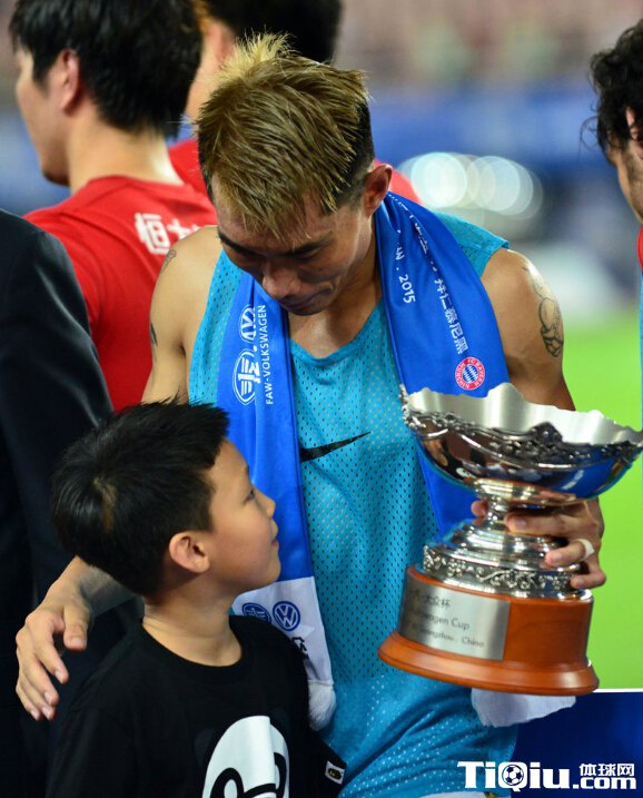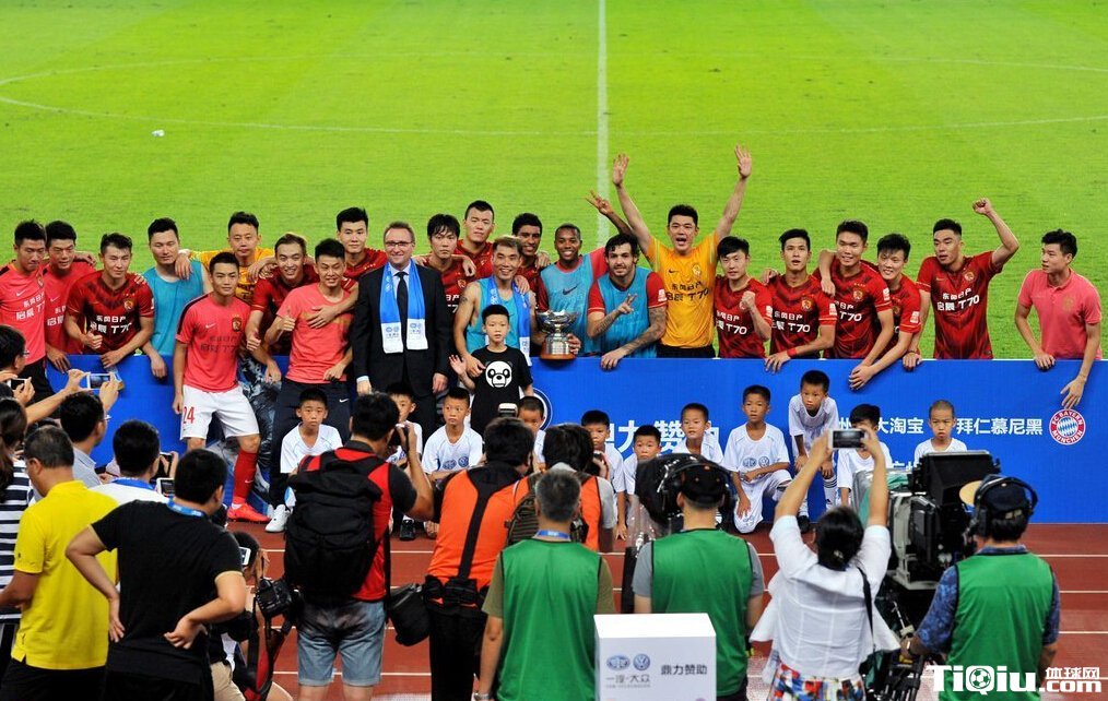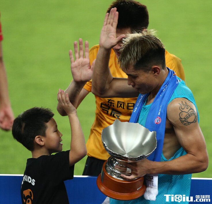 恒大胜拜仁狂欢颁奖 郑智与爱子击掌庆祝(/)