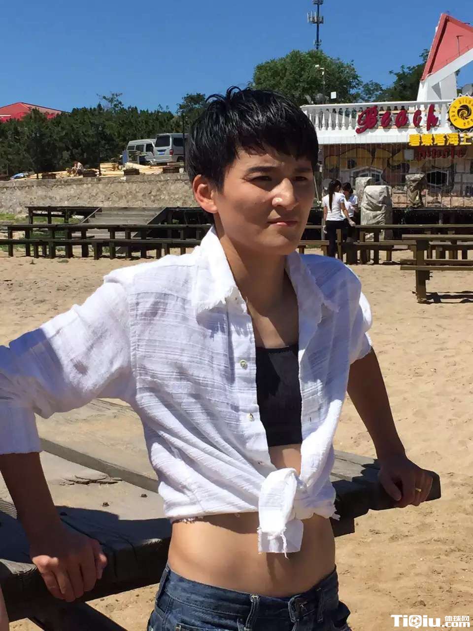 女足拍男人装写真 美女国门海边演湿身诱惑(/)