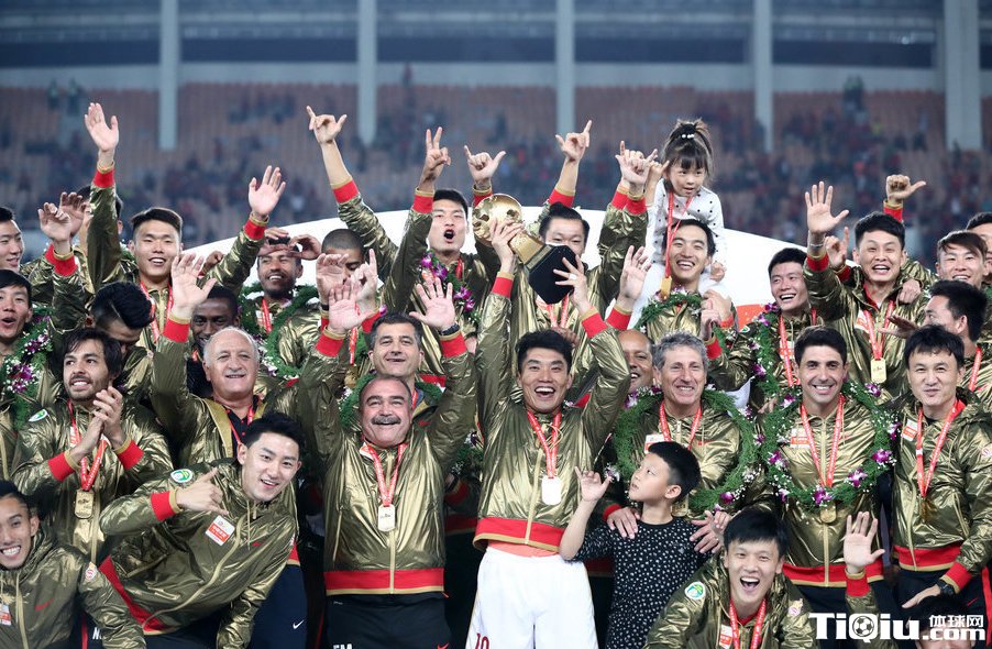 广州恒大六连冠颁奖典礼 恒大众将捧火神杯庆祝夺冠(/)