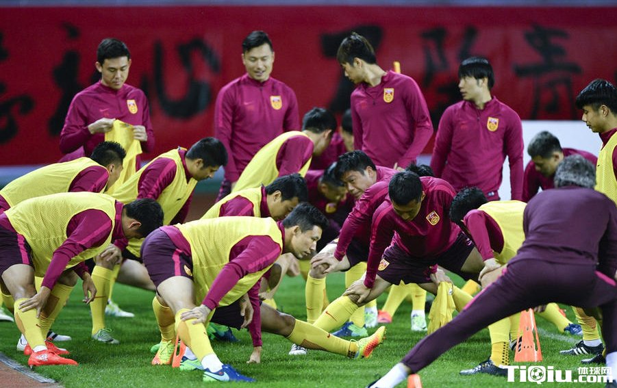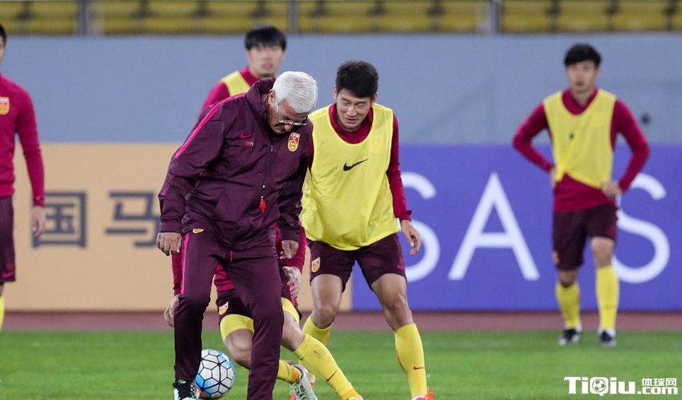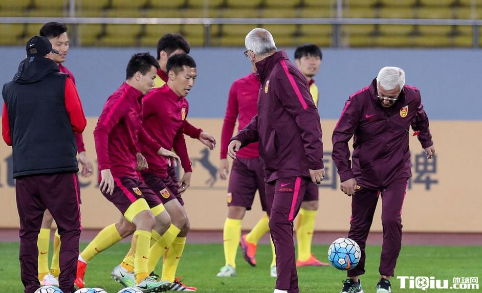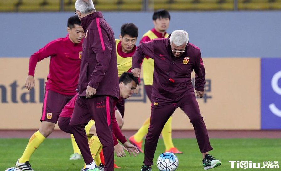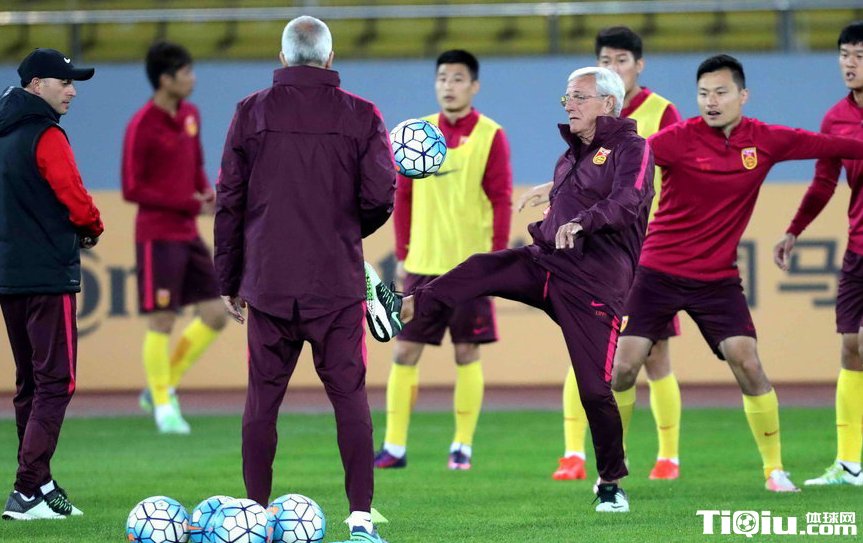 国足众将踩场训练 里皮亲自上阵与球员踢球(/)