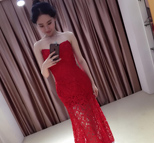 吴曦娇妻穿婚纱 红色镂空裙312共7张