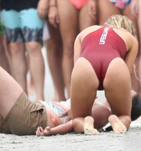 性感超模拍救人戏份 深V比基1717共6张