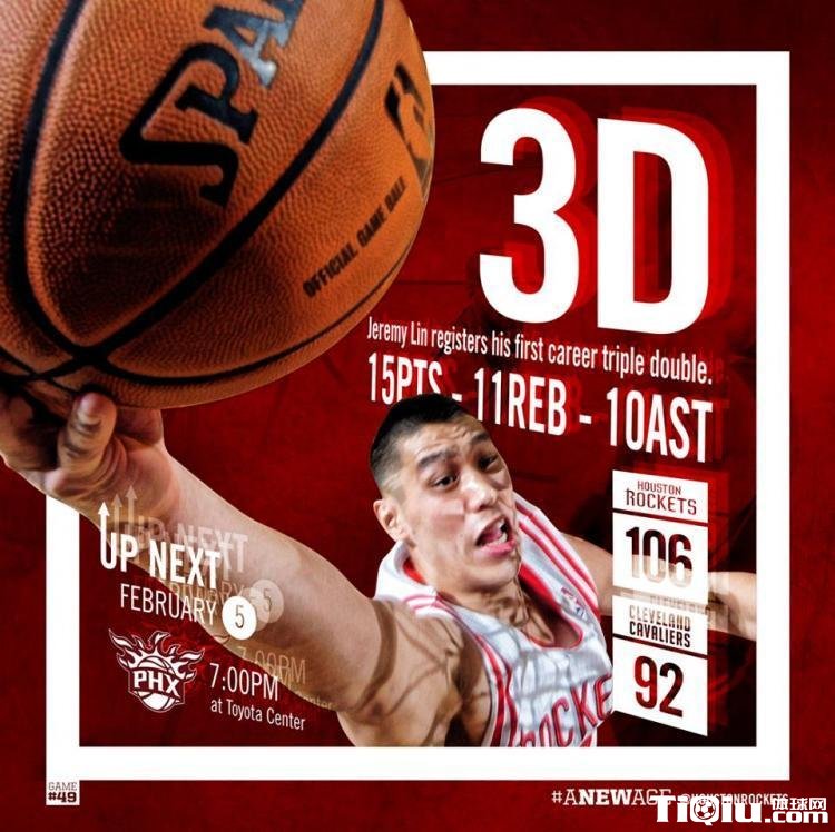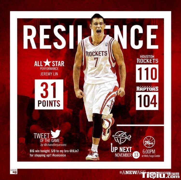 林书豪4次当选火箭胜场红色海报主角(/)