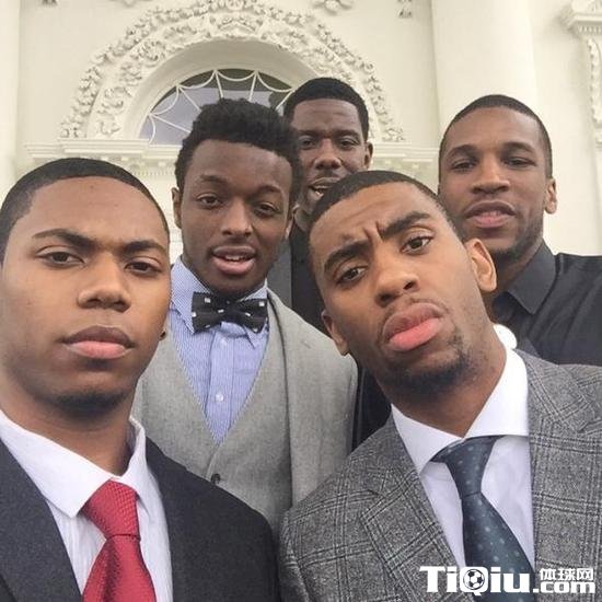 76人全队参观白宫 身着西装合影留念(/)