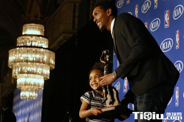 猛龙悍将与女儿分享奖杯 获最佳第六人(/)