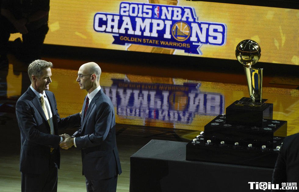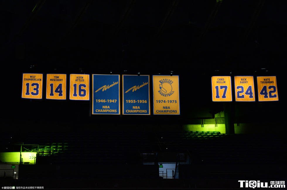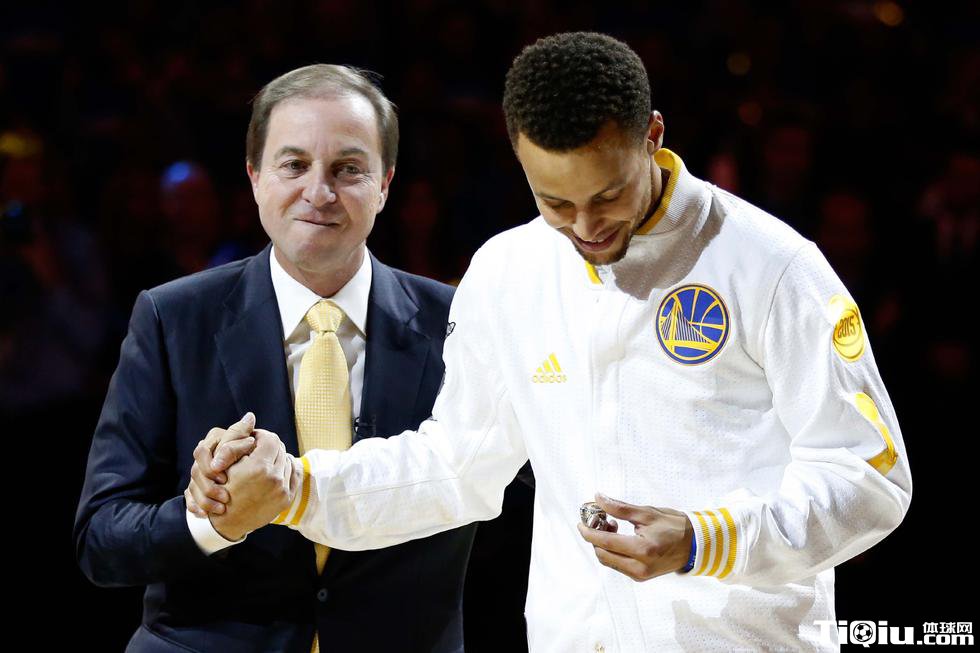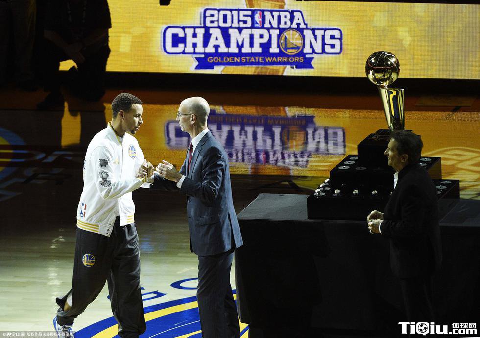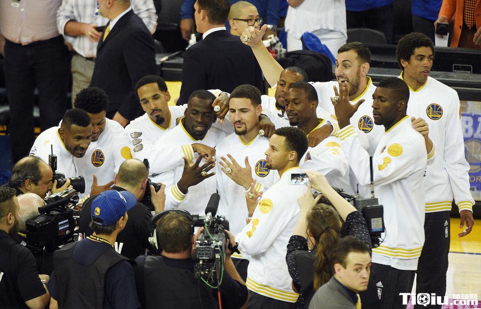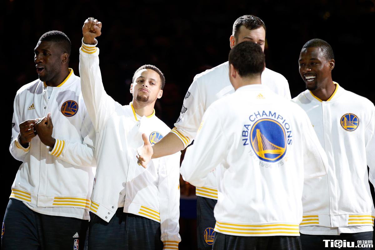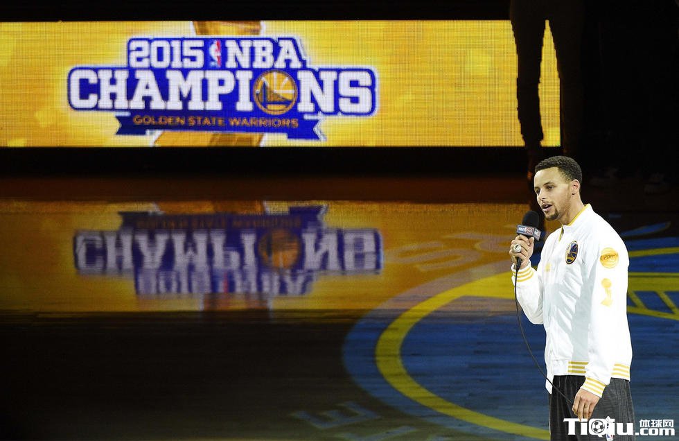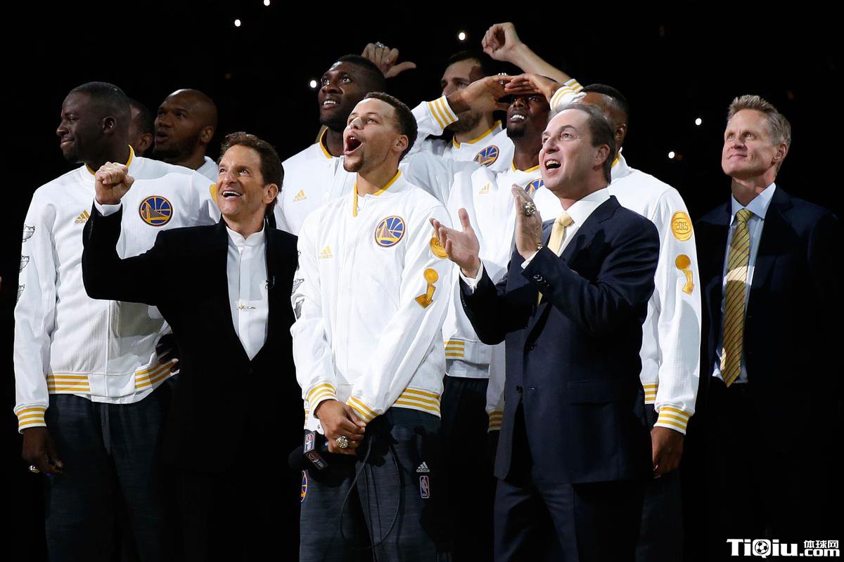 勇士领取冠军戒指仪式 为升起总冠军旗帜欢呼(/)