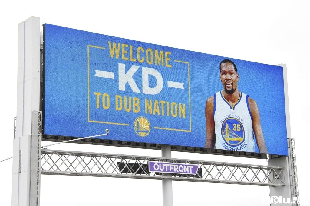 勇士最终拿下雷霆得分死神 主场高挂杜兰特巨型海报(/)