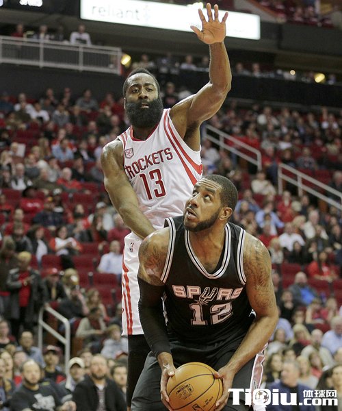 NBA常规赛火箭vs马刺 马刺双德终结火箭十连胜(/)
