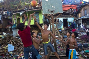 菲律宾儿童废墟中打篮球 荒439共8张