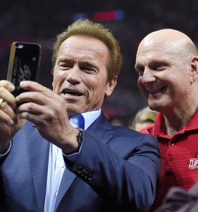 施瓦辛格现身NBA赛场 与快船433共8张