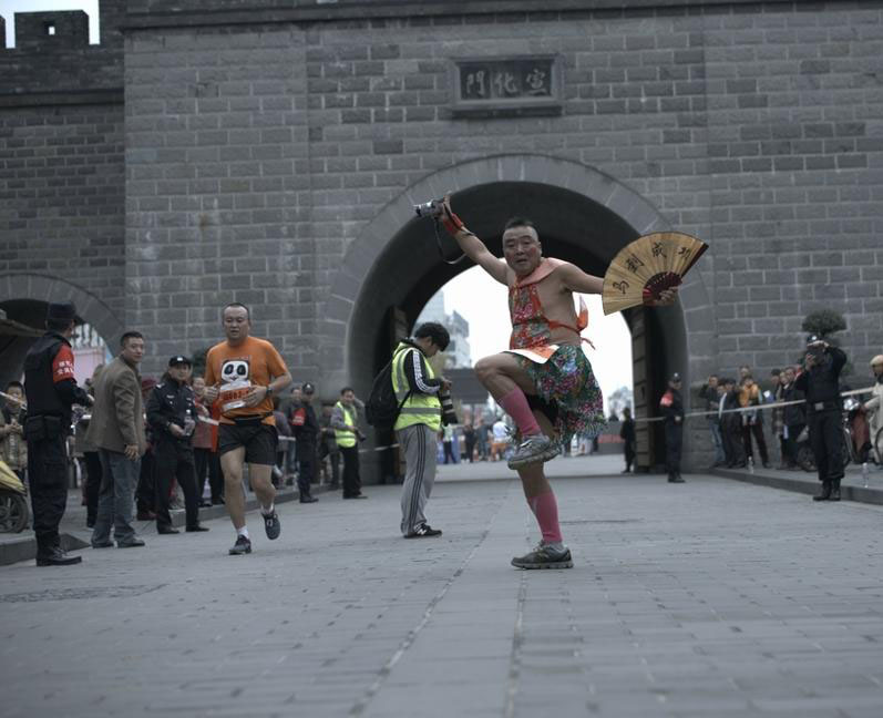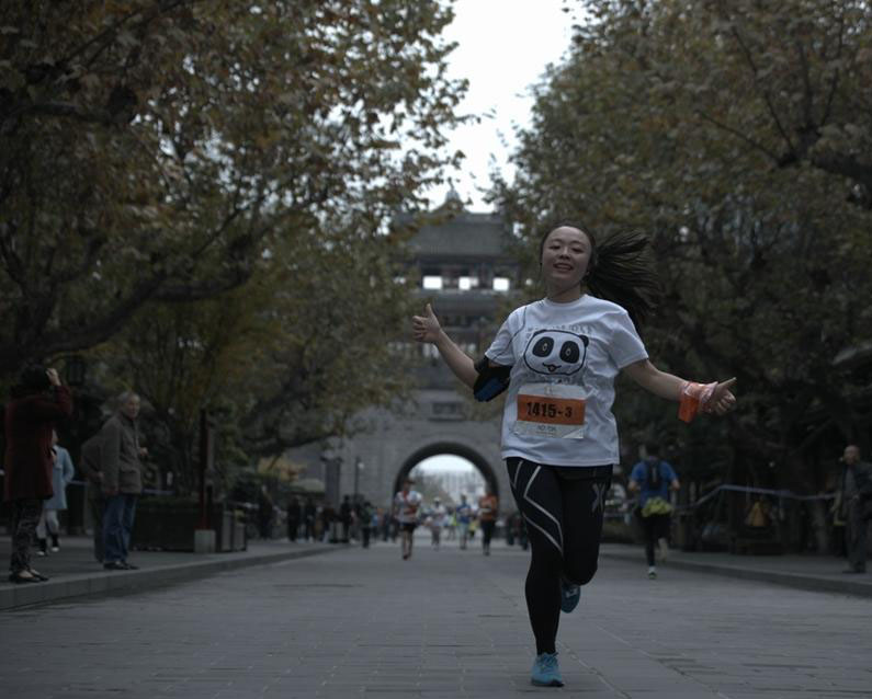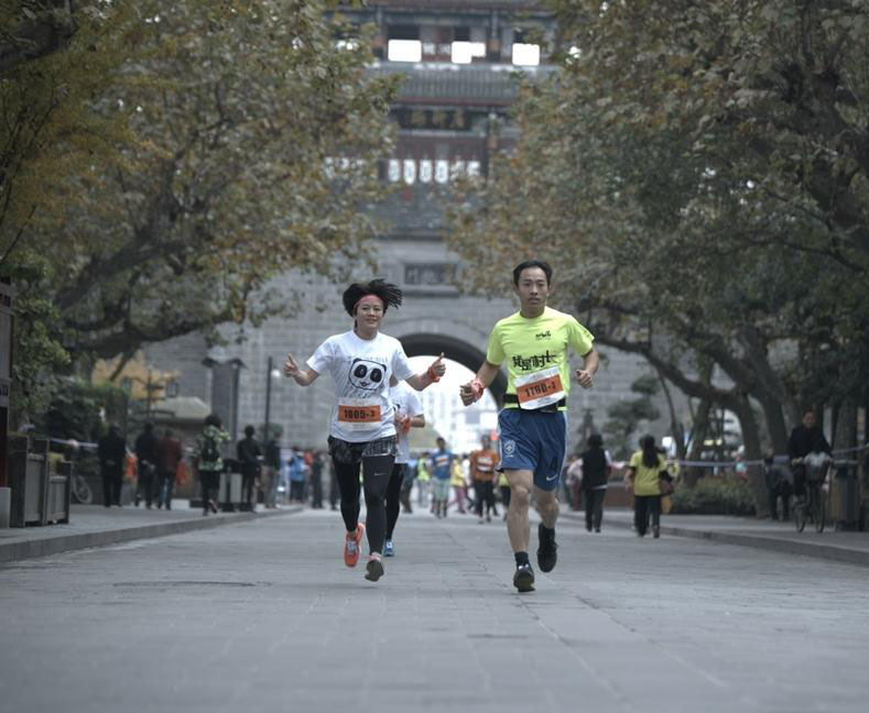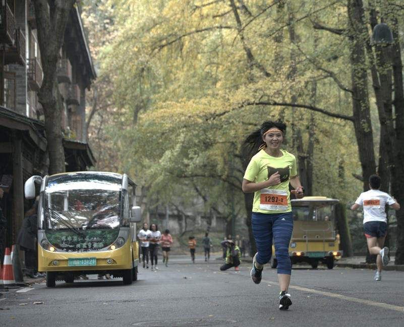 蜀道马拉松力赛 美女参赛者抢镜(/)