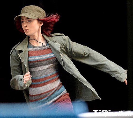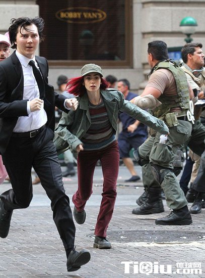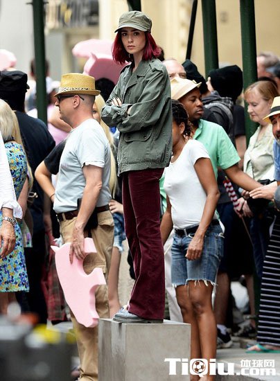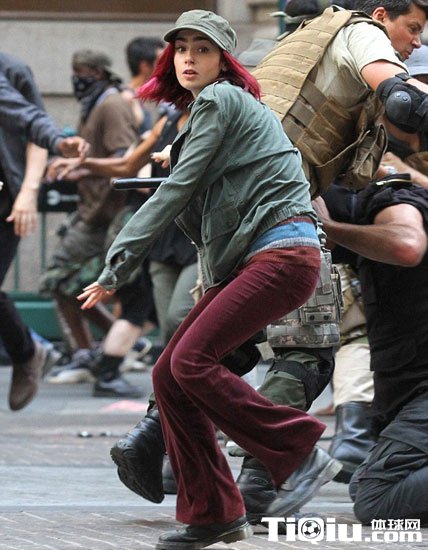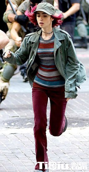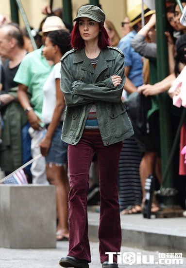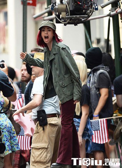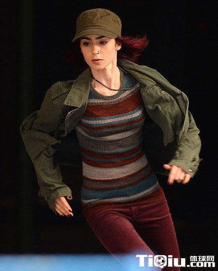 莉莉·柯林斯酷爱户外跑步 红短发装扮新片场狂奔(/)