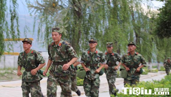 甘肃兵哥哥户外健身训练 不畏炎热户外跑步挥汗如雨(/)