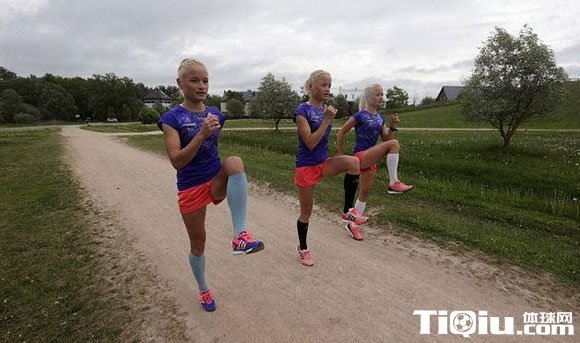 三胞胎姐妹花爱跑步健身 爱沙尼亚姐妹花创奥运历史(/)