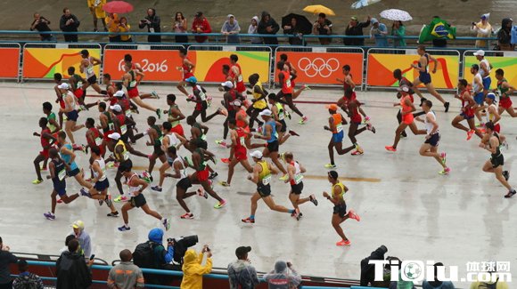 里约奥运男子马拉松开跑 中国三驾马车亮相(/)