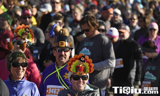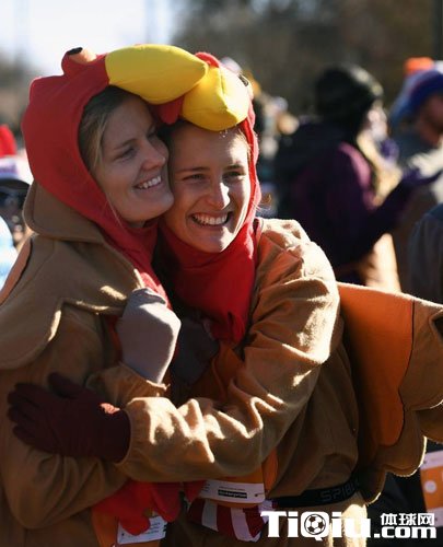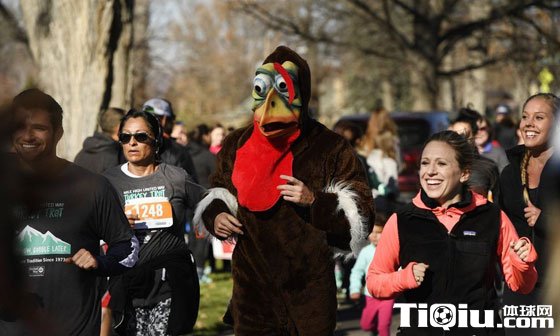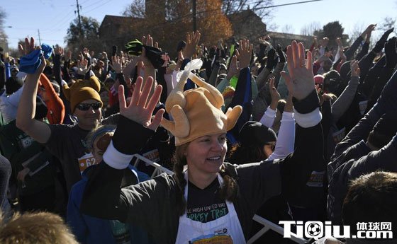 美国丹佛火鸡跑比赛 跑者火鸡扮相激情竞速(/)