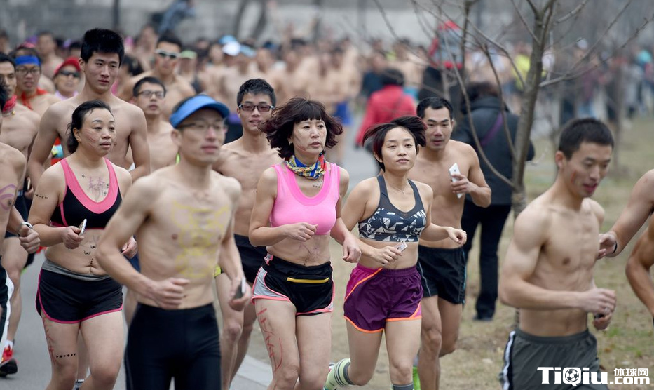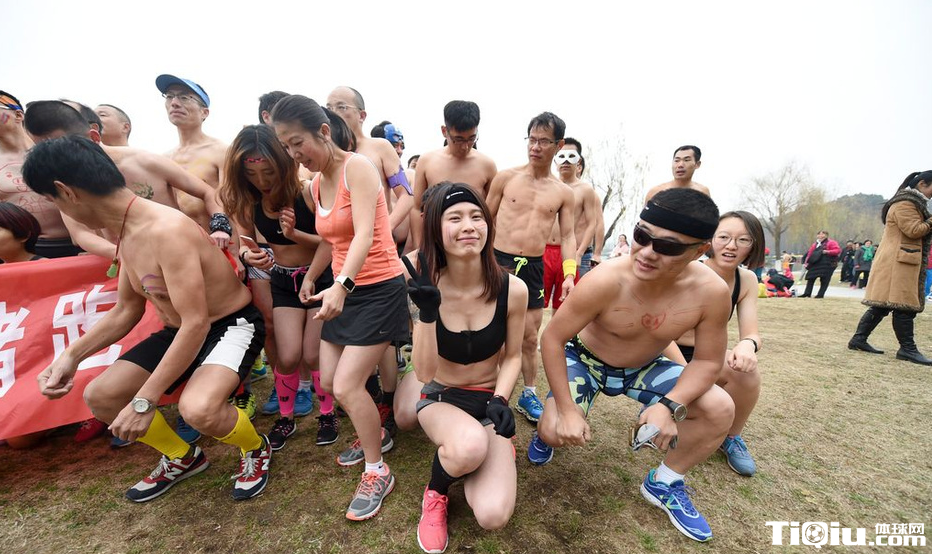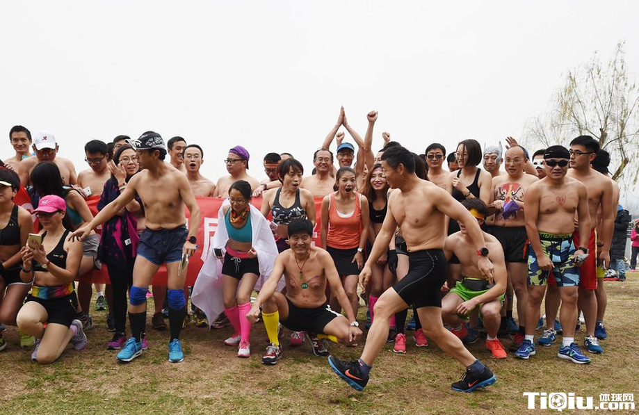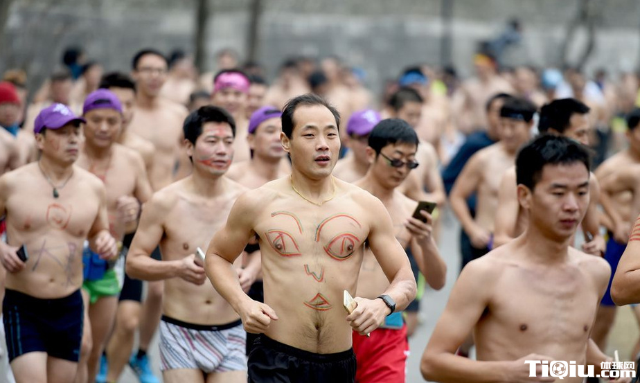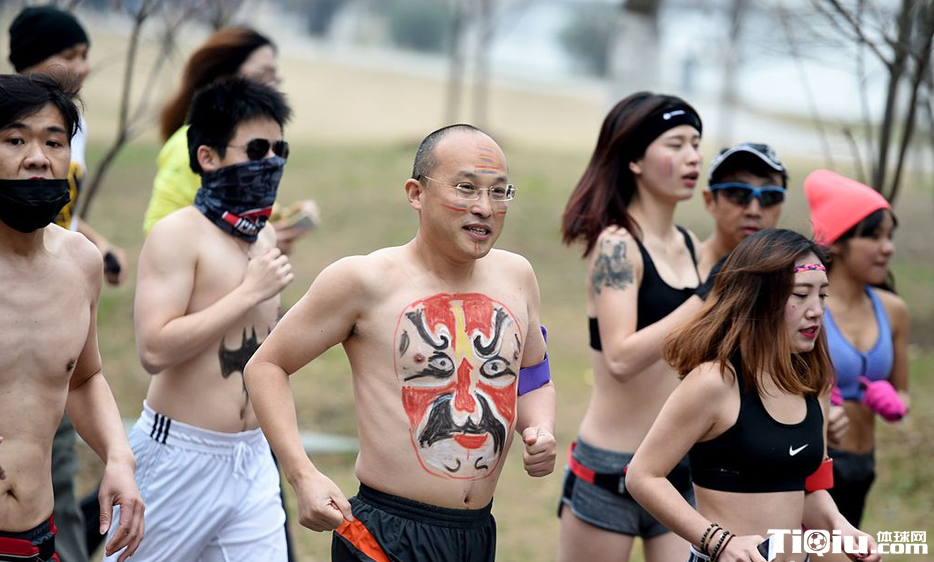 南京玄武湖畔举行光猪跑 搞怪造型秀身材(/)