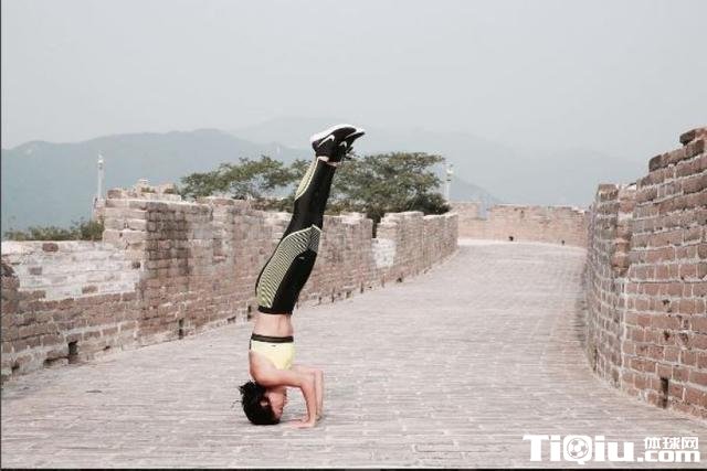 徐濠萦长城上跑步健身 耍酷倒立秀腹肌(/)