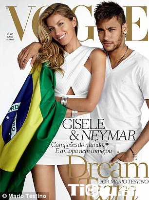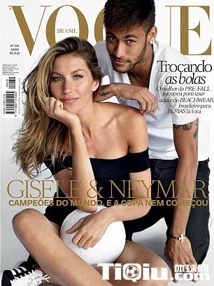 内马尔携手吉赛尔-邦辰拍杂志封面助阵巴西世界杯(/)