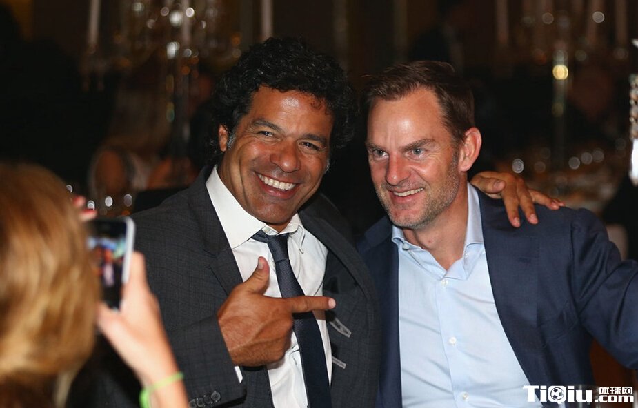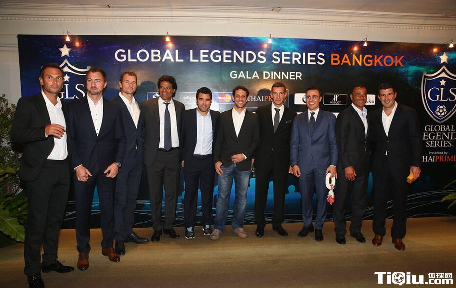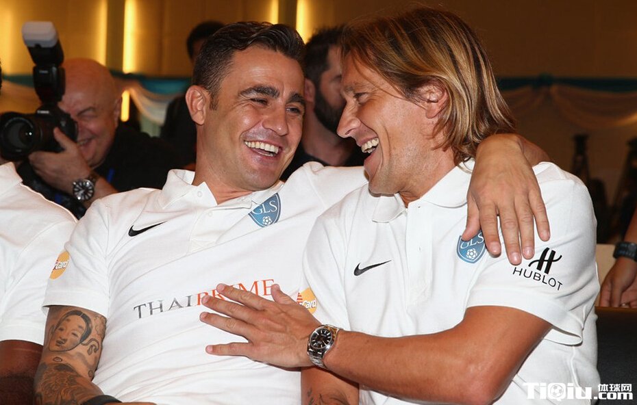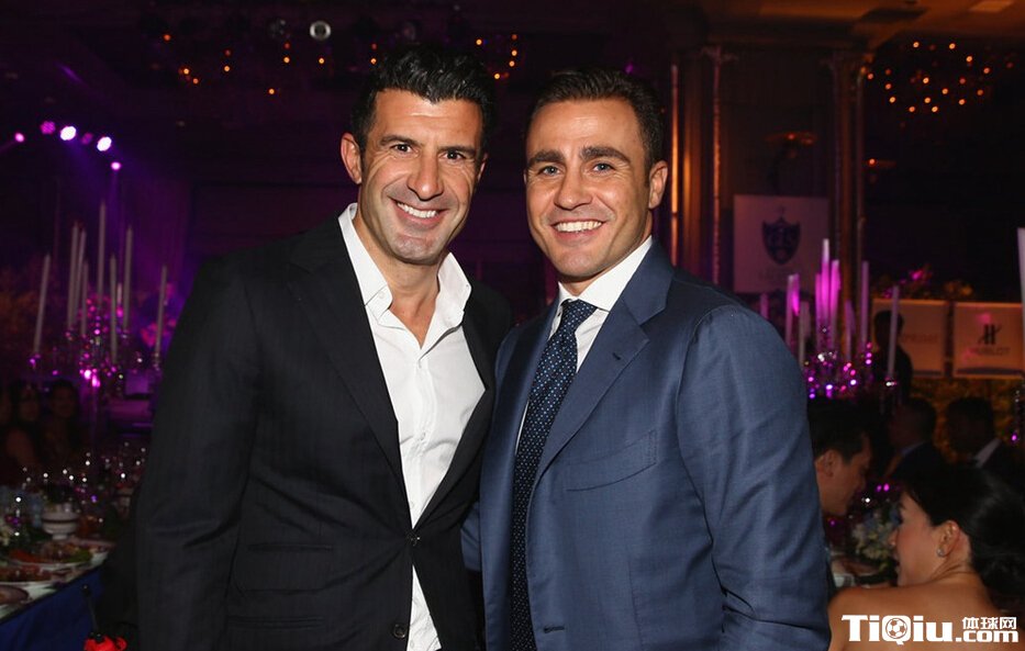 全球传奇明星赛晚宴 卡纳瓦罗与菲戈合影(/)