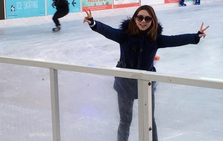邓紫棋第一次挑战滑冰 十几分钟学会(/)