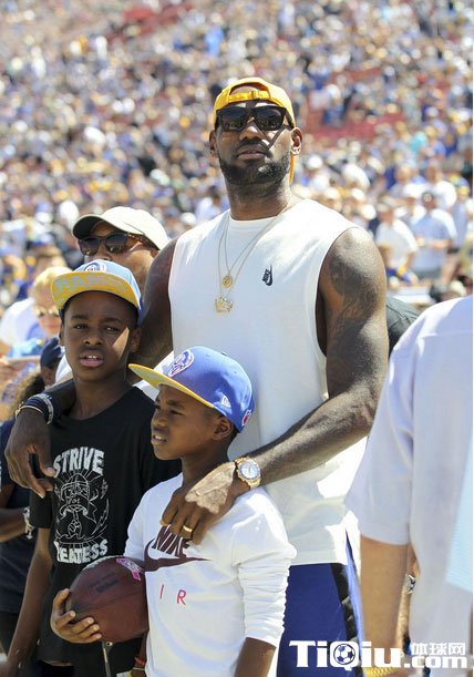 詹姆斯观看橄榄球赛 詹姆斯带儿子一起助威(/)