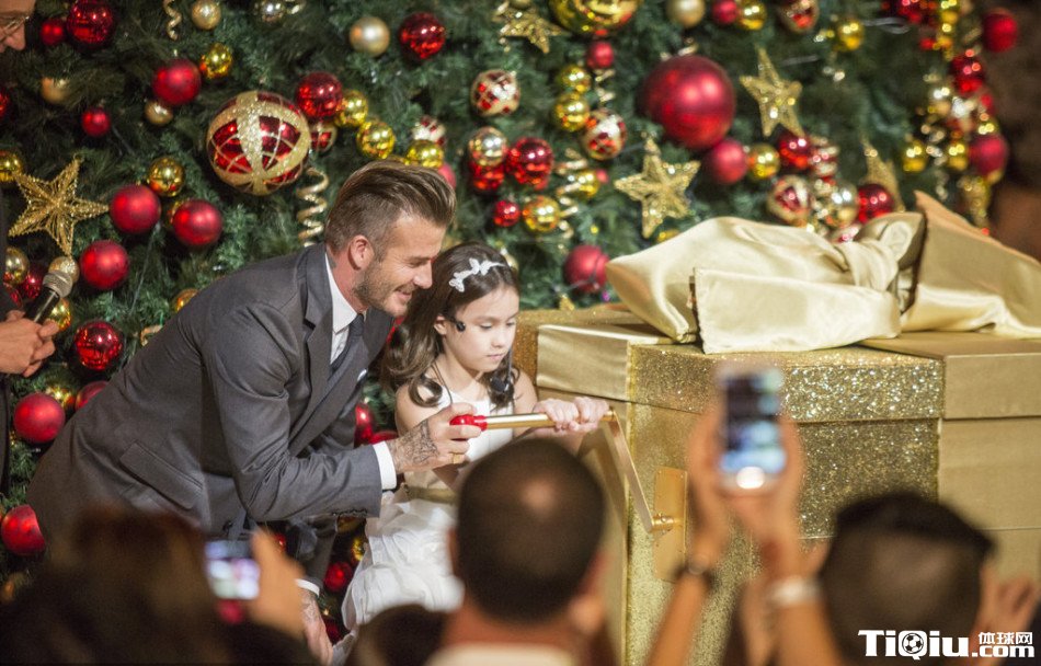 小贝与小女孩互动 尽显温情父爱(/)