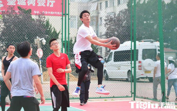 霍建华现身青岛打篮球 运球熟练投篮姿势帅气(/)
