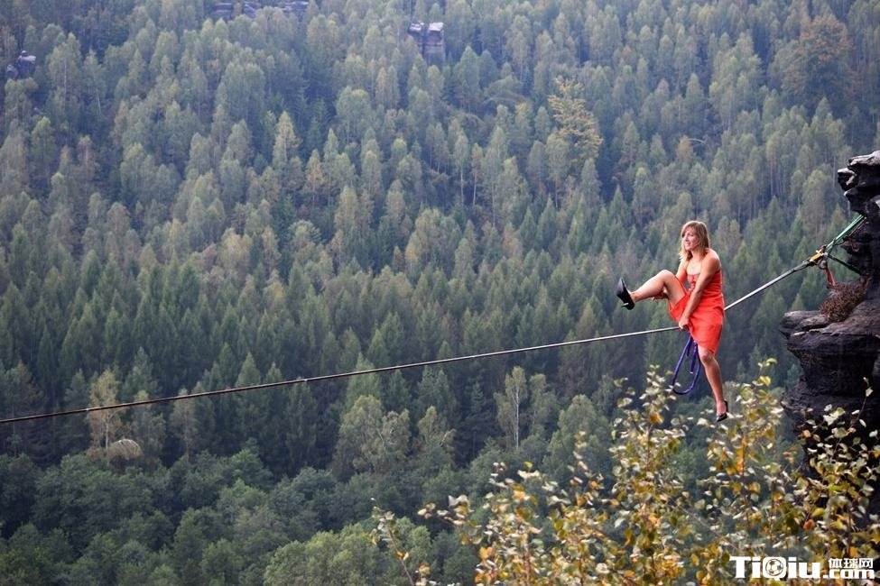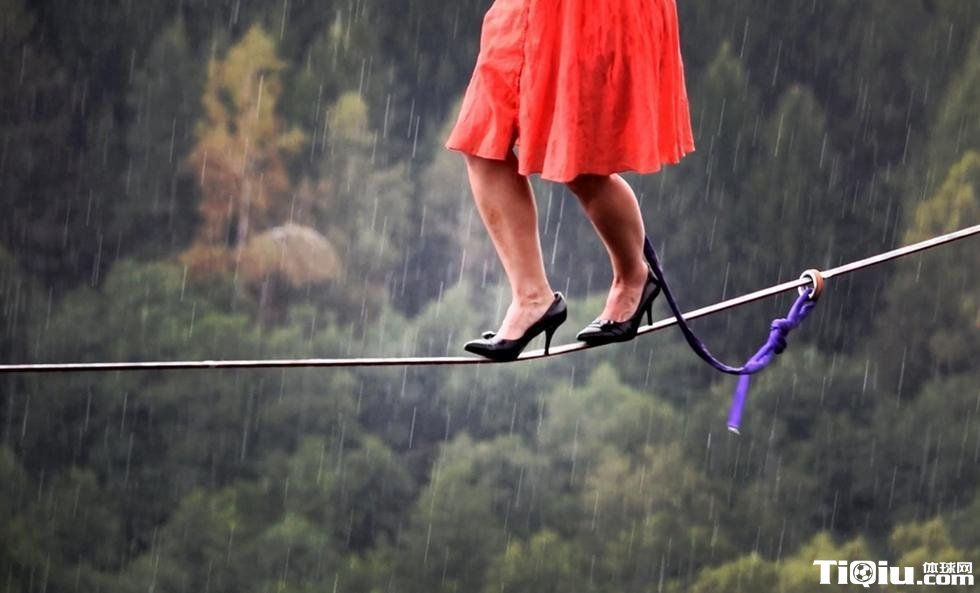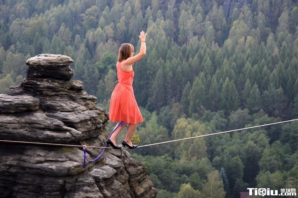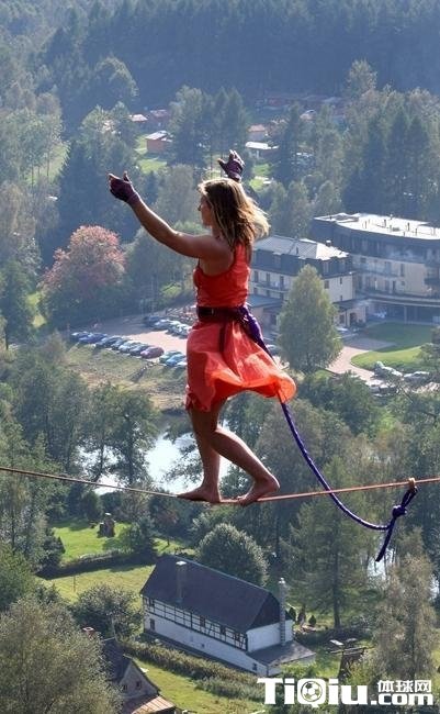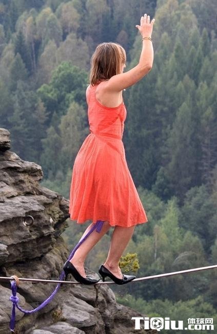 用生命在行走!妹子穿高跟鞋高空走钢丝(/)