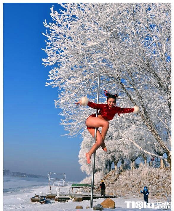 吉林美女挑战雾凇钢管舞 惊呆众多游客(/)