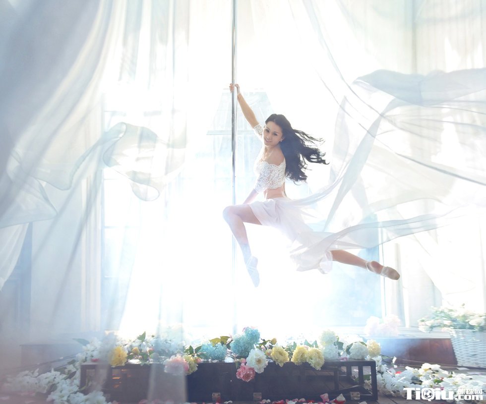 钢管舞美女晒写真照 白纱飞扬唯美(/)