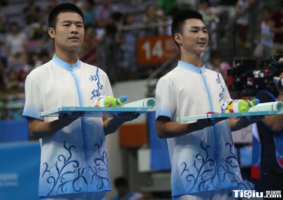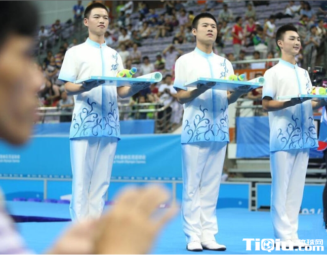 青奥会赛场男子颁奖礼仪亮相(/)