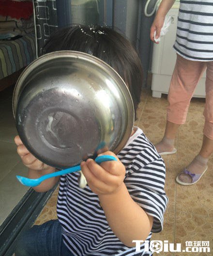 邹市明儿子喝酸奶萌照 酸奶碗比脸还大(/)